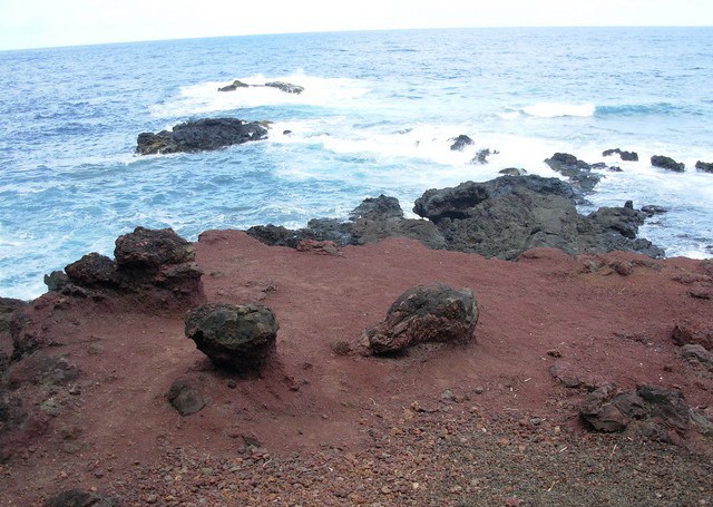 Η παραλία της κόκκινης άμμου βρίσκεται πίσω από ένα ύφαλο που την προστατεύει από τα κύματα του ωκεανού και οφείλει το χρώμα της στο πλούσιο σε σίδηρο υπέδαφος της περιοχής.