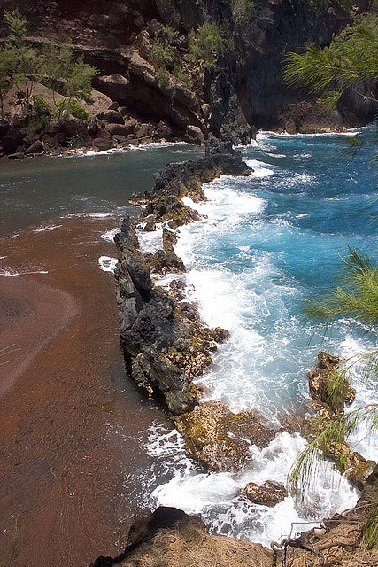 O κόλπος Kaihalulu και η ομώνυμη παραλία με την κόκκινη άμμο βρίσκονται στο νησί Maui της Χαβάης.