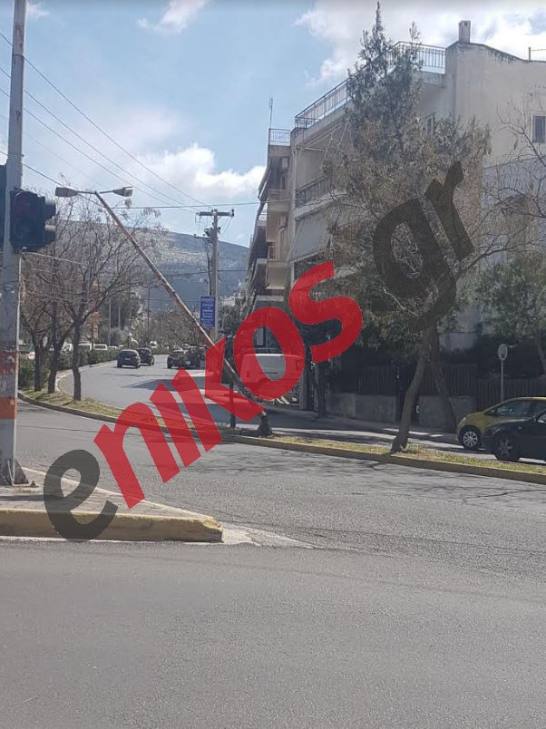 Όπως φαίνεται στη φωτογραφία που έστειλε αναγνώστης του enikos.gr η κολόνα φωτισμού -που βρίσκεται στη Λεωφόρο Καρέα- έχει σπάσει στη βάση της και «κρέμεται» από τα καλώδια της ΔΕΗ.