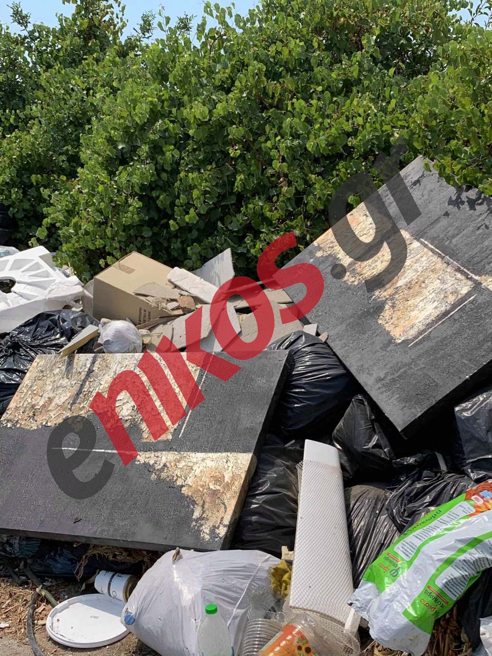 Πνιγμένοι από σκουπίδια και μπάζα είναι οι δρόμοι του οικισμού Άγιοι Ασώματοι στην Ερέτρια, όπως κατήγγειλε στο enikos.gr κάτοικος της περιοχής.