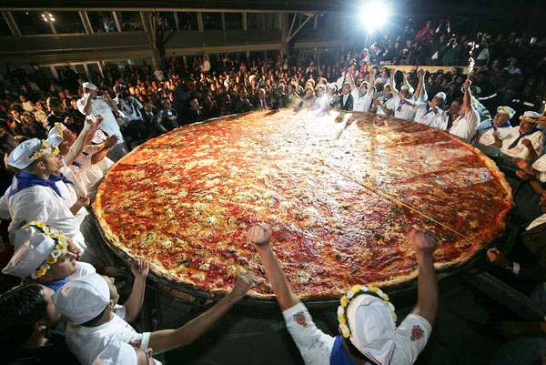 Το ρεκόρ για τη μεγαλύτερη πίτσα στον κόσμο είναι πλέον γεγονός, καθώς μια ομάδα πέντε Ιταλών σεφ κατάφερε να παρασκευάσει μια πίτσα διαμέτρου 40 μέτρων!