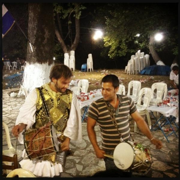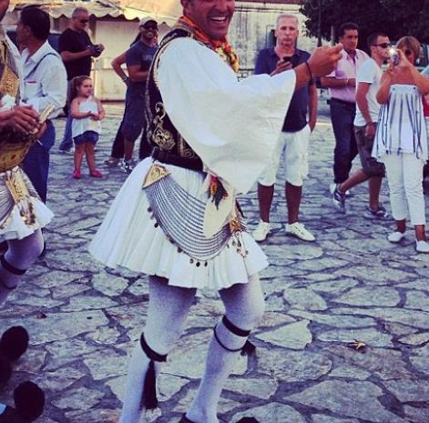 Ο Νίκος Αλιάγας, γιόρτασε στο πανηγύρι της Αγίας Αγάθης φορώντας μάλιστα και φουστανέλα.