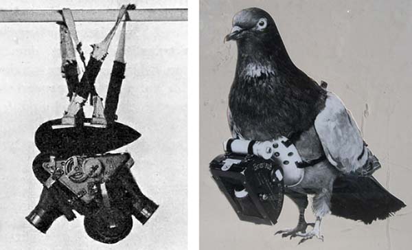 Ένα ταχυδρομικό περιστέρι ήταν εφοδιασμένο με ένα λουρί στο στήθος όπου στερεωνόταν μια μικρή ελαφριά φωτογραφική μηχανή με χρονοδιακόπτη που λάμβανε εικόνες κατά τη διάρκεια της πτήσης του πτηνού πάνω από τις πόλεις.