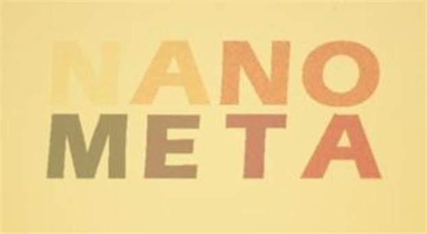 Στην εικόνα απεικονίζονται οι λέξεις «Νano» και «Meta» σε διάφορους χρωματισμούς, κάτω από το πρίσμα του μικροσκοπίου.