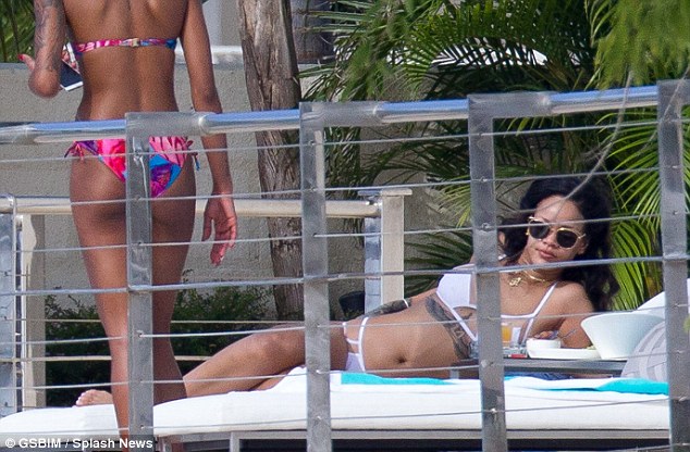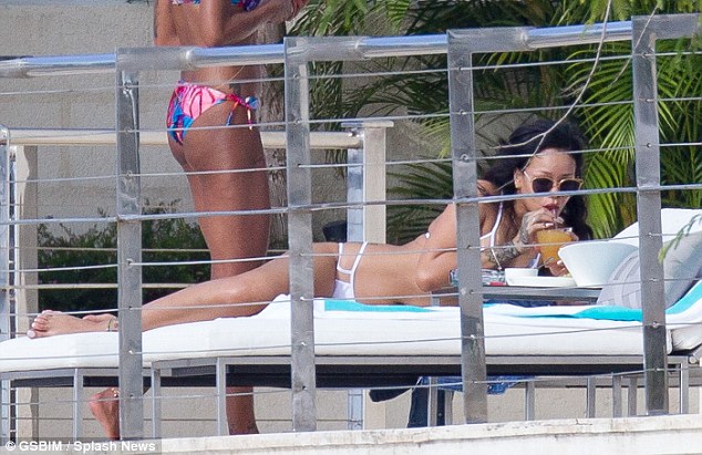 Η 27χρονη τραγουδίστρια απολαμβάνει τον ήλιο φορώντας ένα άσπρο μπικίνι, έχοντας για παρέα τις φίλες της.