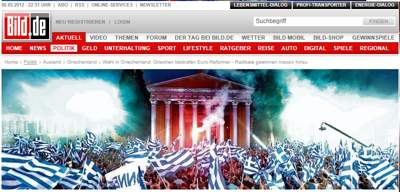 Η εφημερίδα “Bild”, με τίτλο “οι Έλληνες επιλέγουν το χάος”, μιλάει για “διασυρμό των κομμάτων της κυβέρνησης” και ενίσχυση των ακραίων δυνάμεων, αριστερών και δεξιών”. Ο αρθρογράφος αμφισβητεί εάν υπάρχει πια πλειοψηφία για το πρόγραμμα λιτότητας και επισημαίνει: “για να το πούμε ωμά, είναι τελείως ασαφές, εάν η επόμενη κυβέρνηση θα τηρήσει τις δεσμεύσεις”.