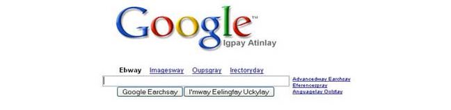 Εκτός από τα αγγλικά και τα ελληνικά, το Gοοgle υποστηρίζει κι άλλες γλώσσες όπως τα «γουρουνολατινικά», η γλώσσα των Κλίνγκον από το Star Trek και η διάλεκτος του ψευδού γουρουνιού Έλμερ.