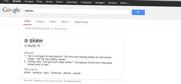 Πληκτρολογήστε στο Google τι σημαίνει η αγγλική λέξη «askew». Η λέξη αυτή σημαίνει «λοξά» και το Google εμφανίζει γυρτή τη σελίδα με τα αποτελέσματα.