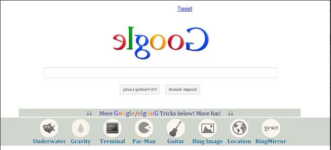 Γράψτε elgoog στο πεδίο αναζήτησης ή μεταβείτε απευθείας στο elgoog.im (η φράση «I’m Google» γραμμένη ανάποδα). Όλα εμφανίζονται σε κατοπτρική γραφή από τα δεξιά στα αριστερά.