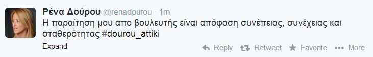 “Η παραίτηση μου από βουλευτής είναι απόφαση συνέπειας, συνέχειας και σταθερότητας” σχολίασε χαρακτηριστικά στον προσωπικό της λογαριασμό στο twitter.