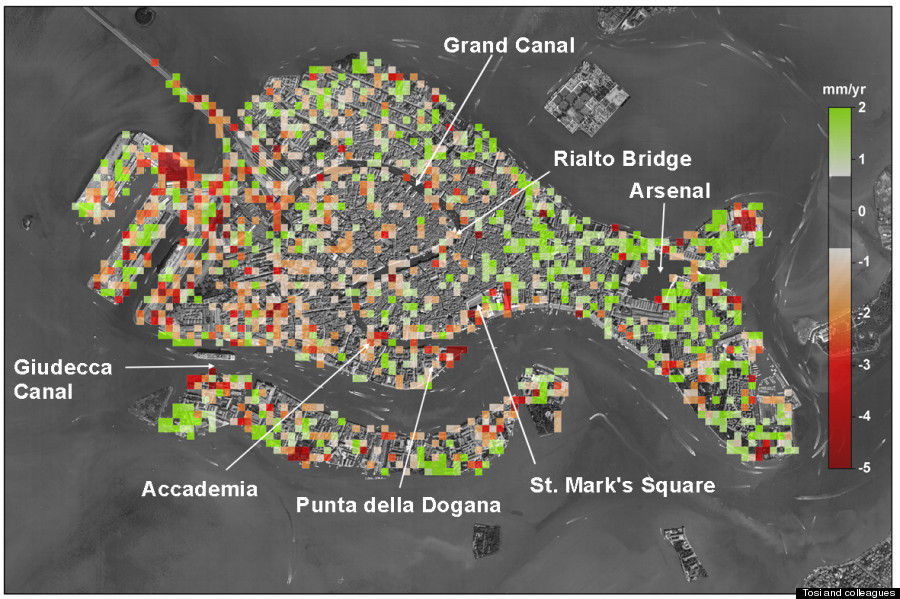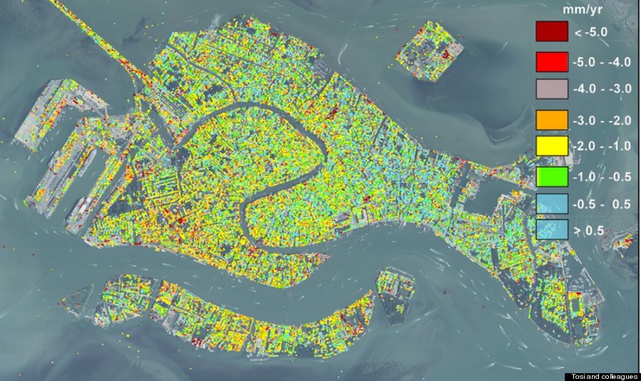 Την ταχύτητα με την οποία βυθίζεται η Βενετία κατάφεραν να υπολογίσουν ερευνητές του πανεπιστημίου της Πάντοβα στην Ιταλία, χρησιμοποιώντας δορυφορικές εικόνες υψηλής ανάλυσης.