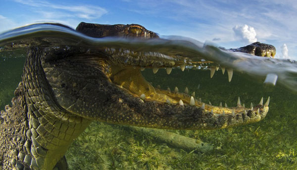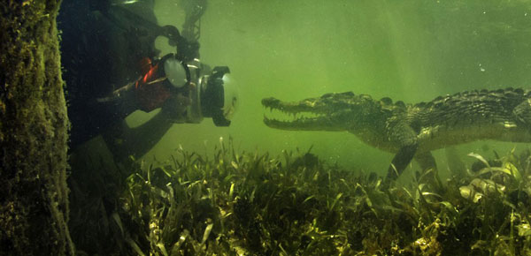 Ο 40χρονος φωτογράφος Οκτάβιο Αμπούρτο κολυμπούσε στα νερά της Καραϊβικής όταν ξαφνικά εμφανίστηκε μπροστά του ένας τεράστιος κροκόδειλος.