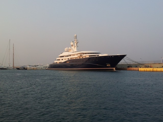 Το Αl Mirqab, το πέμπτο μεγαλύτερο γιοτ στον κόσμο, είναι αραγμένο στην Μαρίνα του Φλοίσβου και ανήκει στον Εμίρη του Κατάρ, Hamad bin Khalifa Al Thani.