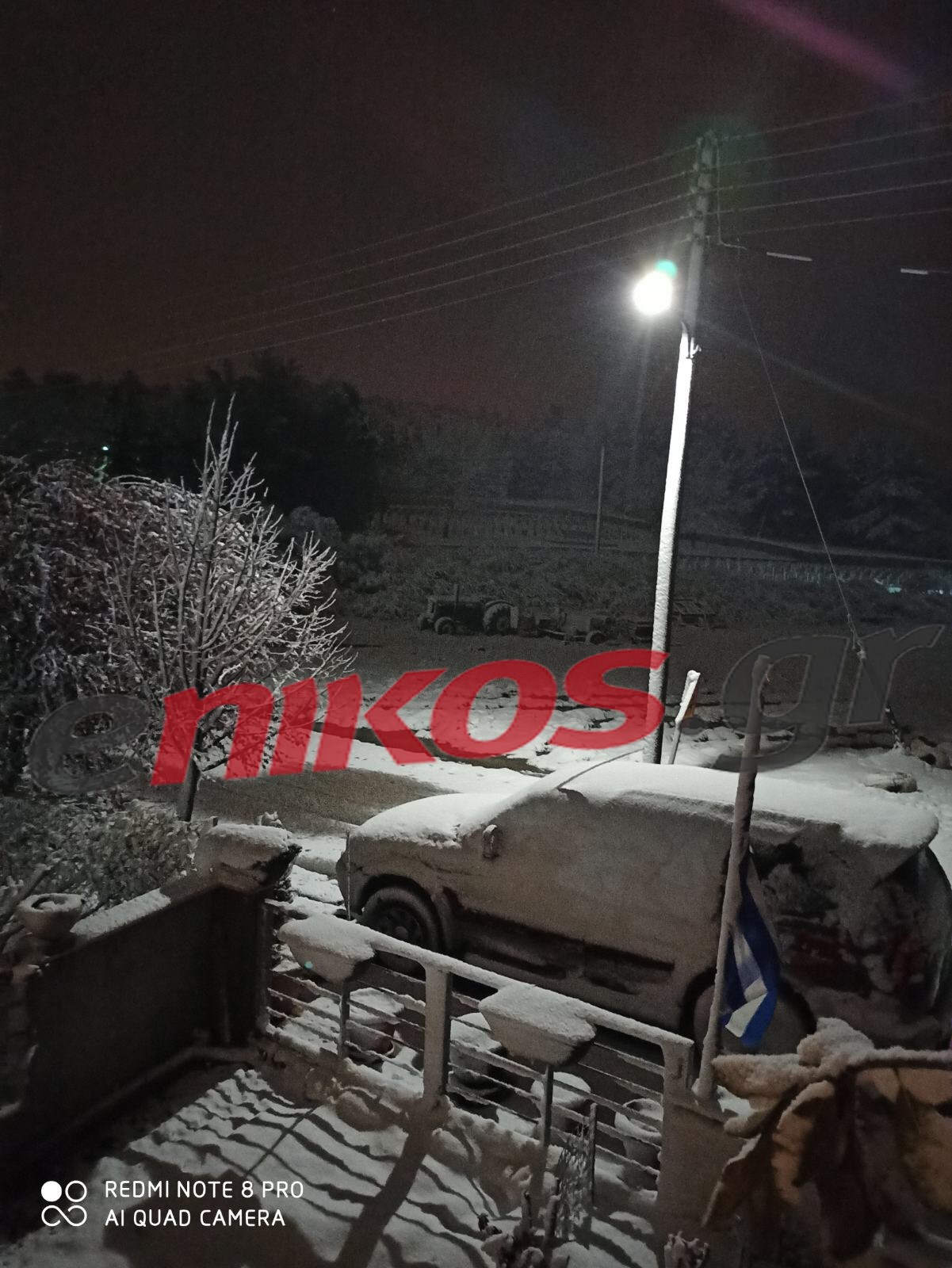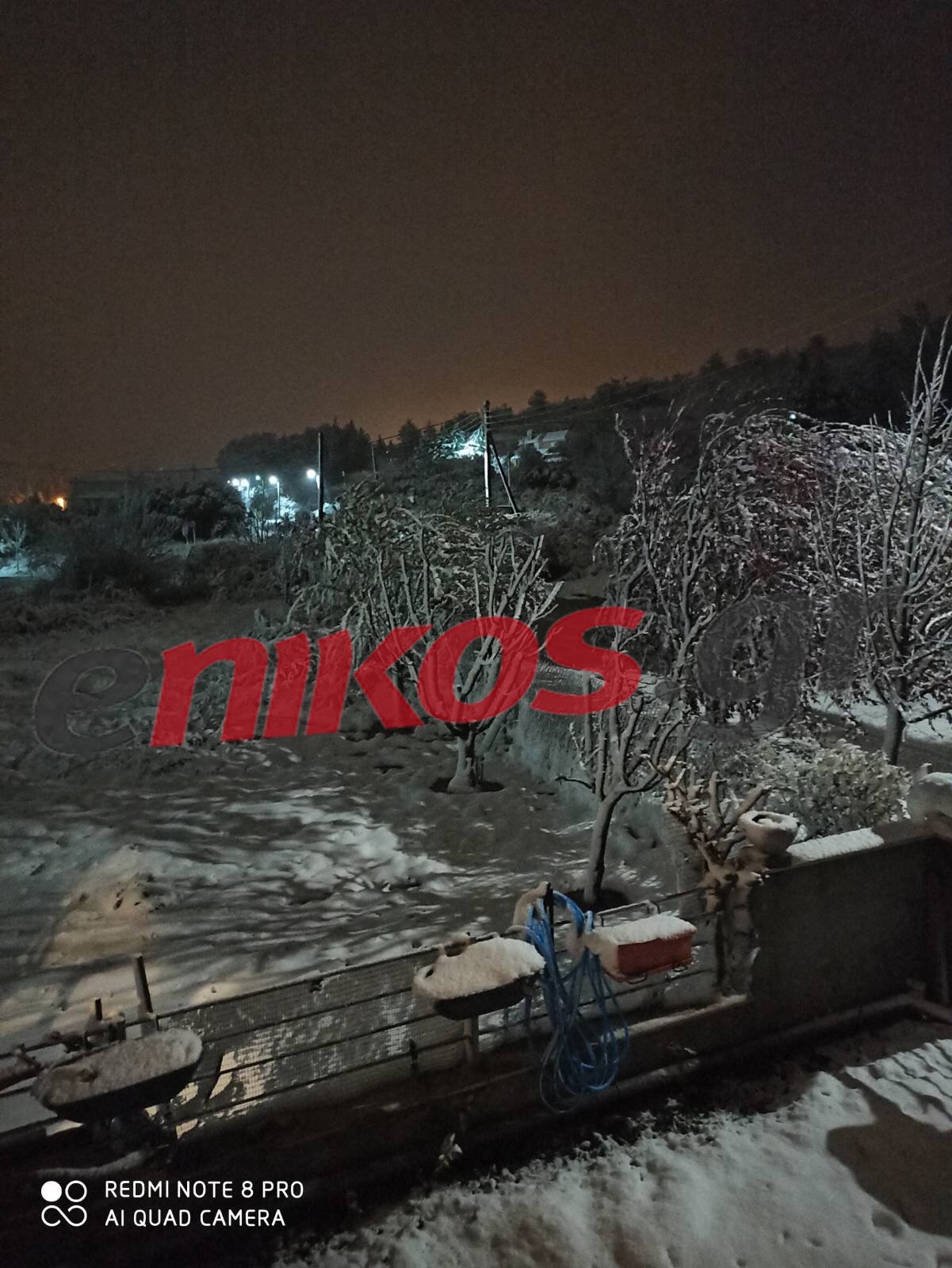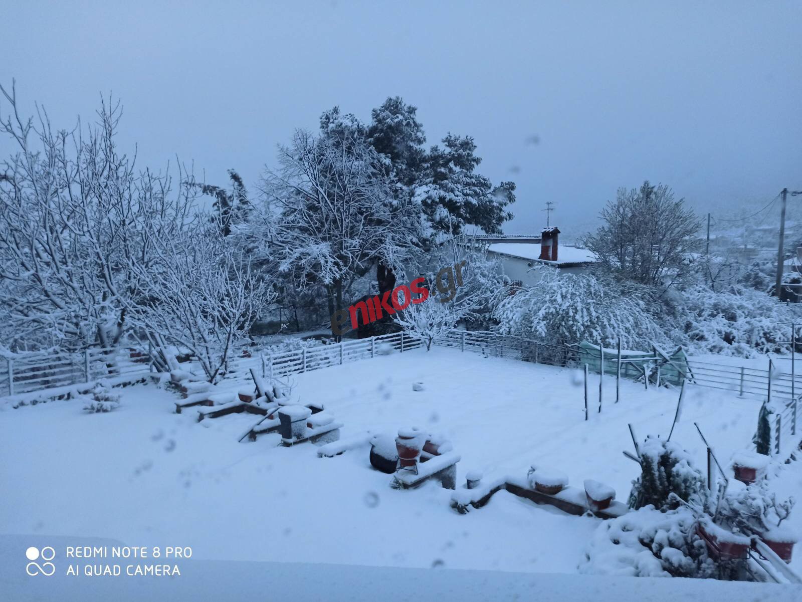 Αναγνώστης του enikos.gr έστειλε φωτογραφίες από την Εξοχή Θεσσαλονίκης, όπου το τοπίο είναι λευκό καθώς το χιόνι έχει καλύψει τα πάντα.