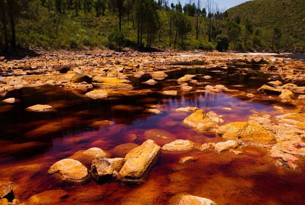 Τα 5.000 χρόνια μεταλλευτικής δραστηριότητας με μεταλλεύματα και πετρώματα, υδροδιαλυτά και αρκετά πλούσια σε οξέα, έδωσαν αυτή την απίστευτη εικόνα στον ποταμό που θεωρείται ένας από τους πιο μολυσμένους του πλανήτη.