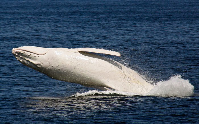Πολλά είδη στο ζωικό βασίλειο «πάσχουν» από αλμπινισμό, μια ασθένεια που προκαλεί λεύκανση σε δέρμα και τρίχες, και αποτελούν χωρίς αμφιβολία ένα αξιοπερίεργο όσο και εντυπωσιακό θέαμα για τους τυχερούς που θα βρεθούν στο δρόμο τους. Και για φάλαινα, το κατάλευκο χρώμα κλέβει σίγουρα την προσοχή των θεατών.