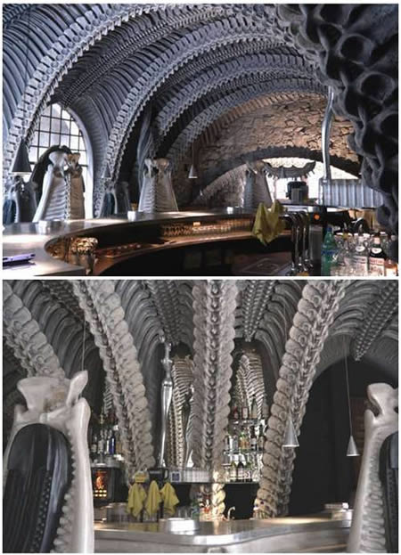 Θα το βρείτε στο Gruyere της Ελβετίας. Σίγουρα θα νιώσετε σαν να πίνετε ποτό σε ένα μπαρ που χτίστηκε από Aliens και κατά κάποιο τρόπο μάλλον δεν θα έχετε και πολύ άδικο. Σχεδιάστηκε από τον Hans Rudi Giger (HR Giger), ο οποίος εργαζόταν ως σχεδιαστής στην σειρά ταινιών Alien και κέρδισε το Oscar για τα καλύτερα ειδικά εφέ το 1980. Το ανατριχιαστικό μπαρ είναι διακοσμημένο ολόκληρο με οστά σκελετών, από τους τοίχους μέχρι τις καρέκλες και τα βάζα λουλουδιών.