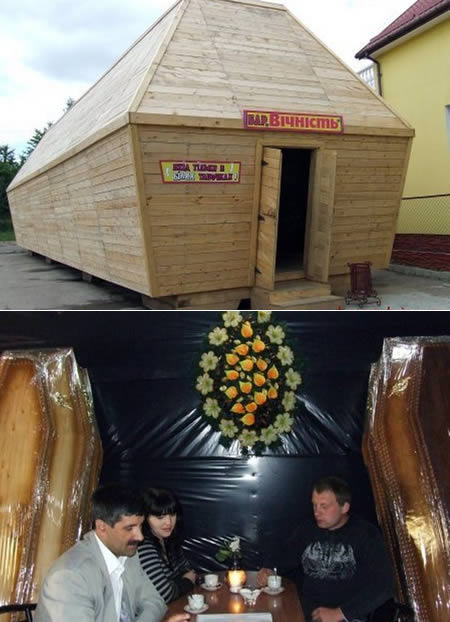 Το Bar Eternity, ένα μπαρ που εξωτερικά αλλά και εσωτερικά θυμίζει φέρετρο στο Truskavets της Ουκρανίας, υπόσχεται να σας «ανεβάσει» την διάθεση.
