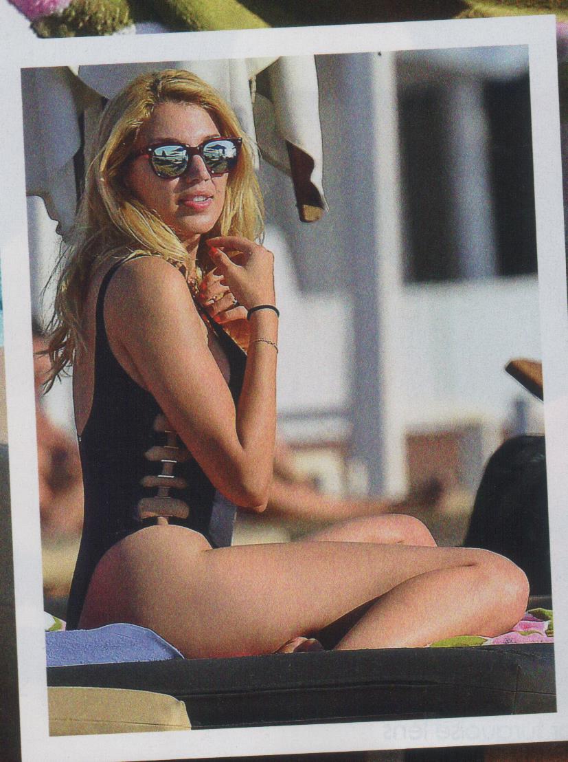 Για τις πρώτες καλοκαιρινές εξορμήσεις της στην παραλία επέλεξε ένα σέξι μαύρο ολόσωμο μαγιό με χρυσές λεπτομέριες κι ένα navy ριγέ μπικίνι.
