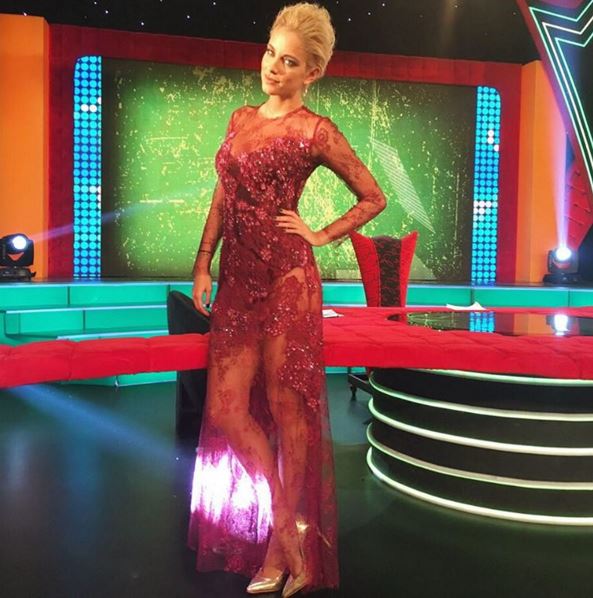 Η Δούκισσα Νομικού πόσταρε μία φωτογραφία της στο instagram, όπου φοράει ένα κόκκινο διάφανο φόρεμα.