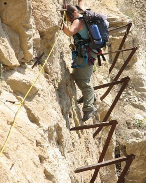 Το μονοπάτι με πλάτος μόνο ένα μέτρο είναι κυριολεκτικά στην άκρη του γκρεμού, 240 μέτρα ψηλότερα από το ποτάμι που διασχίζει το φαράγγι.