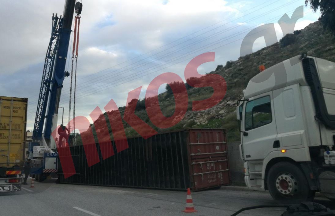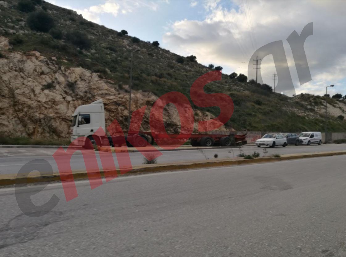 Όπως φαίνεται στη φωτογραφία που έστειλε αναγνώστης του enikos.gr μία νταλίκα ανετράπη.