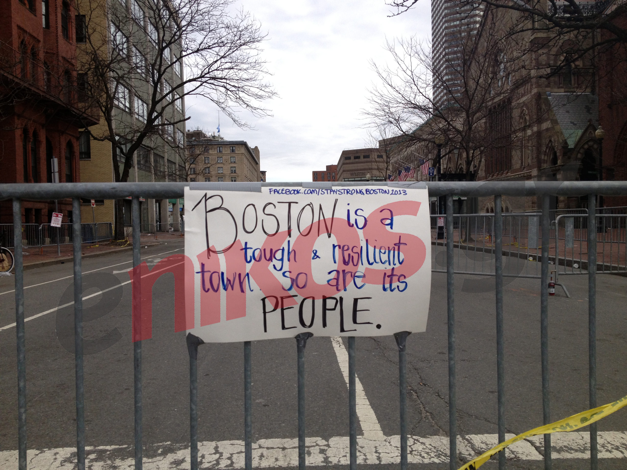 «Ήμουν δύο τετράγωνα μακριά από το σημείο των εκρήξεων, κατευθυνόμενος προς τη γραμμή του τερματισμού… ήμουν 5 λεπτά –ευτυχώς- καθυστερημένος στην αναχώρησή μου από το σπίτι μου, στο κέντρο της Βοστώνης, με τα μηνύματα των φίλων και συναδέλφων μου, που ήδη παρακολουθούσαν την κορυφαία εκδήλωση μαζικού αθλητισμού της ανατολικής ακτής, να με προτρέπουν να βιαστώ και να παραμείνω κοντά στο σημείο τερματισμού, ώστε να συναντηθούμε μετά για να συμμετάσχουμε στα δεκάδες parties που ήδη ξεκινούσαν σε κάθε –σχεδόν- γωνιά της Boylston Street, του δρόμου που έμελε να ταυτίσει το όνομά του με το αιματοκύλισμα μιας ειρηνικής και πανηγυρικής εκδήλωσης, με την απώλεια τριών αθώων υπάρξεων και με τον τραυματισμό και τους ακρωτηριασμούς 180 περίπου άλλων.
