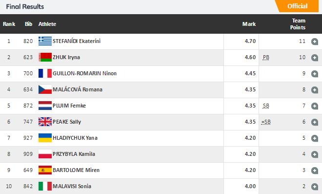 Αναλυτικά, τα αποτελέσματα στο επί κοντώ γυναικών: