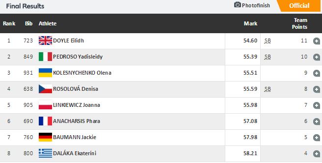 Αναλυτικά, τα αποτελέσματα στα 400μ. εμπ. γυναικών: