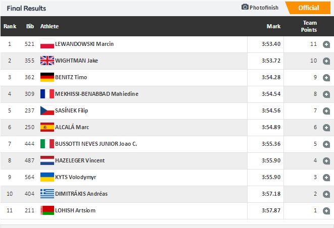 Σε έναν αγώνα με πολύ… σπρώξιμο ο Ανδρέας Δημητράκης έμεινε στη δέκατη θέση των 1500μ. με 3:57.18, αφήνοντας, πάντως, πίσω του τον μεγάλο αντίπαλο τη μάχη της παραμονής, Λευκορώσο.