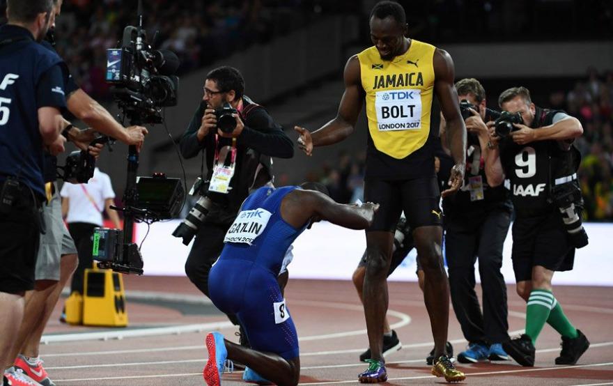 Ο Μπολτ αποχωρεί με ήττα στα 100μ. Μόνο που είναι σαν να νίκησε. Δείτε την αντίδραση του μεγάλου νικητή της κούρσας μόλις τον είδε μετά τον τερματισμό. Ο Τζάστιν Γκάτλιν υποκλίθηκε.