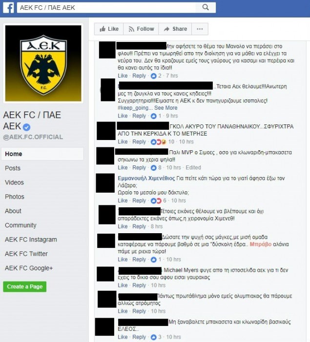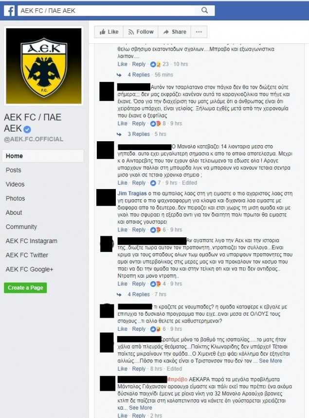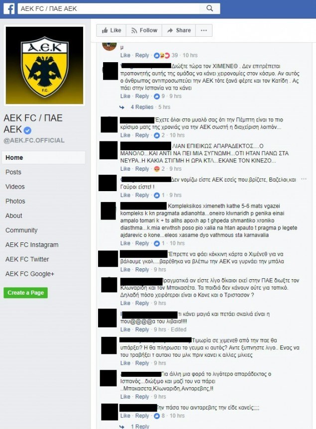 “Διώξτε τώρα τον ΧΙΜΕΝΕΘ . Δεν επιτρέπεται προπονητής αυτής της ομάδας να κάνει χειρονομίες στον κόσμο. Αν αυτός ο άνθρωπος αντιπροσωπεύει την ΑΕΚ τότε ξανά φέρτε και τον Κατίδη . Ας πάει στην Ισπανία να τα κάνει.”