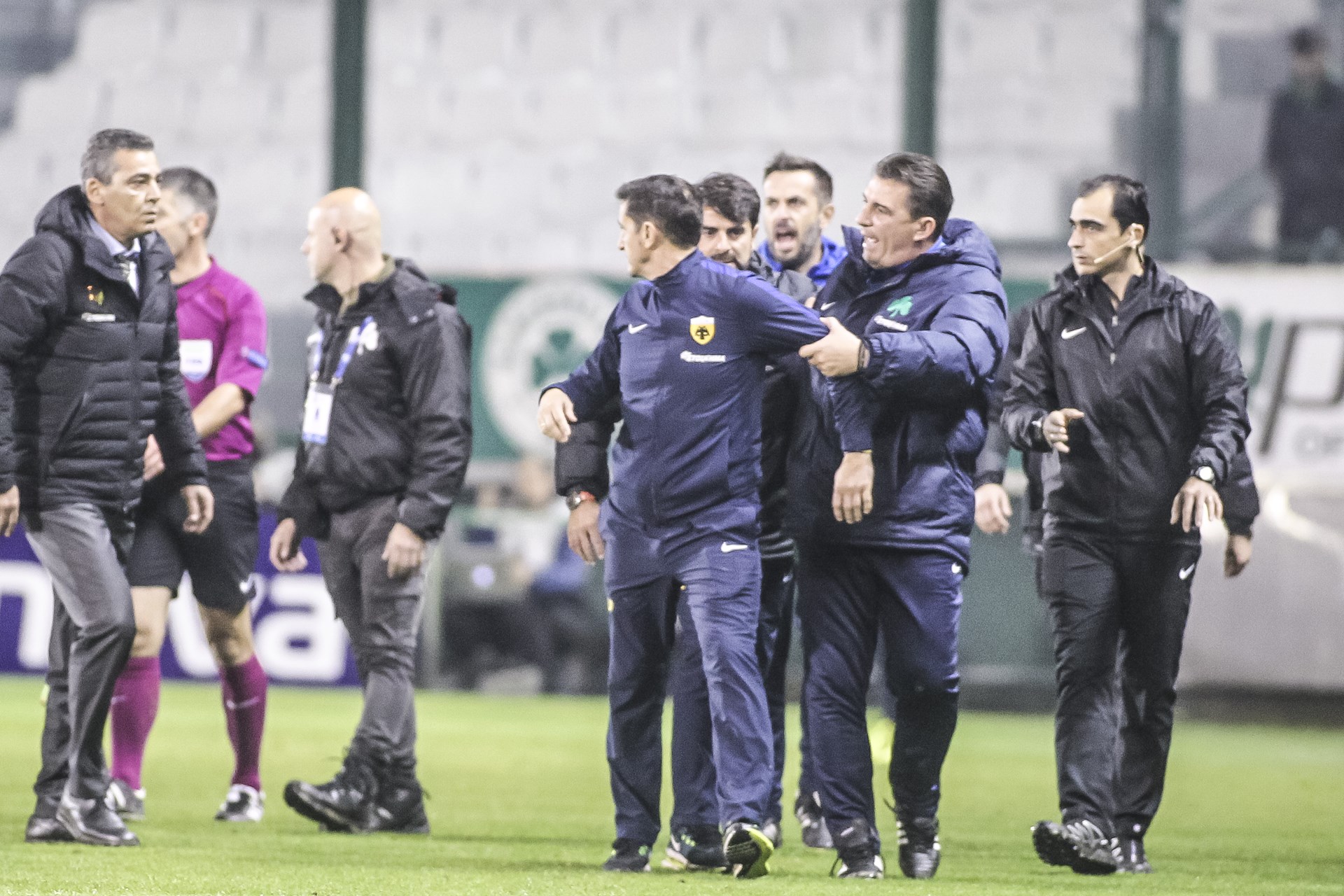 Ο διαιτητής του αγώνα απέβαλε τον Ισπανό προπονητή του Δικεφάλου και εκείνος, κατευθυνόμενος προς τη φυσούνα, έκανε μία άσεμνη χειρονομία με προτεταμένο το μεσαίο δάχτυλο προς τους οπαδούς των «πρασίνων».
