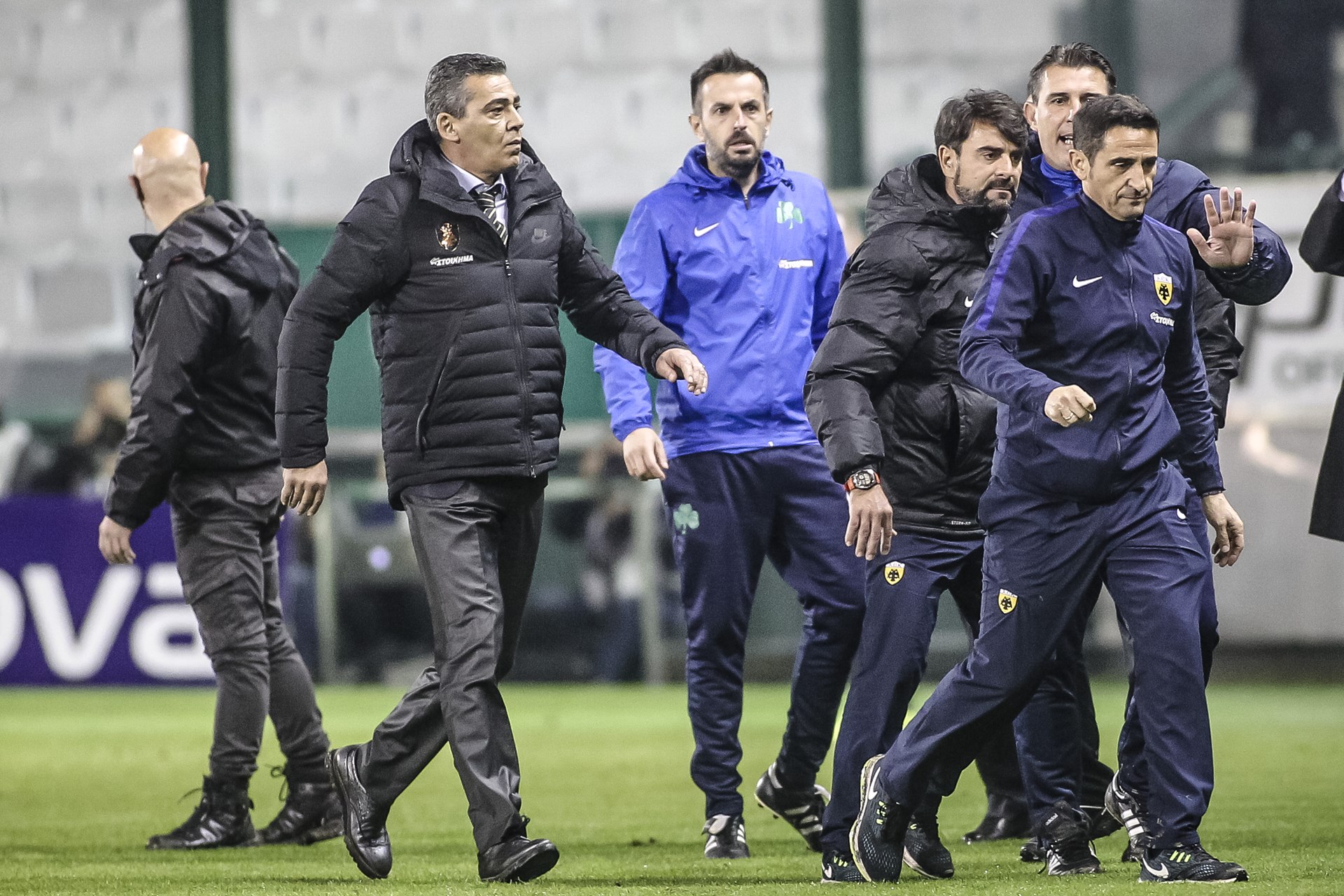 Ο Ισπανός τεχνικός της ΑΕΚ αποβλήθηκε στο 86ο λεπτό, αφού προσπάθησε να εισέλθει στον αγωνιστικό χώρο, μετά από σύρραξη που προκλήθηκε έπειτα από μαρκάρισμα του Βιγιαφάνιες στον Έλντερ Λόπες.