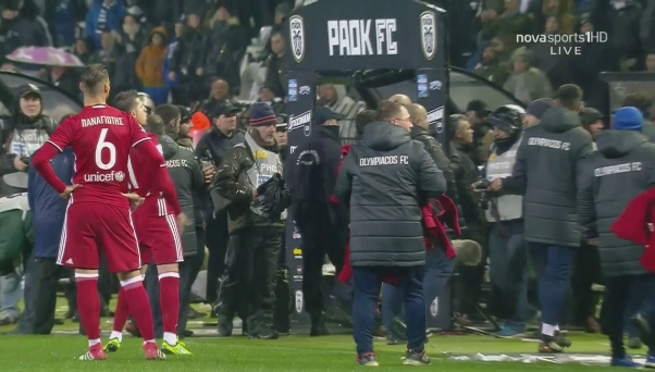 Ένα αντικείμενο έπεσε στον ερυθρόλευκο πάγκο και κτύπησε τον προπονητή των Πειραιωτών Όσκαρ Γκαρθία.