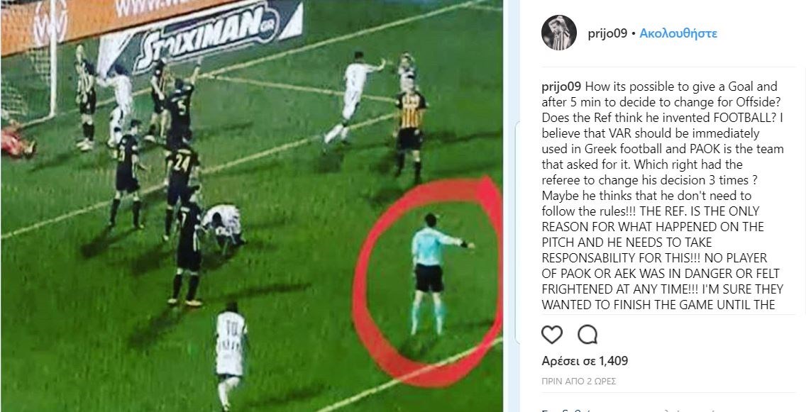 Την οργή του για τα όσα έγιναν στο παιχνίδι με την ΑΕΚ και κυρίως για τη φάση του γκολ του Βαρέλα, εξέφρασε ο Αλεξάνταρ Πρίγιοβιτς μέσω ποσταρίσματός του στο Instagram.