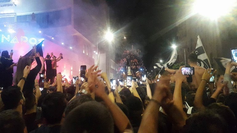 Χιλιάδες ΠΑΟΚτσήδες περίμεναν καρτερικά με τις 04:30 τα ξημερώματα για να πανηγυρίσουν την κατάκτηση του κυπέλλου Ελλάδος μαζί με τους πρωταγωνιστές.