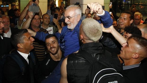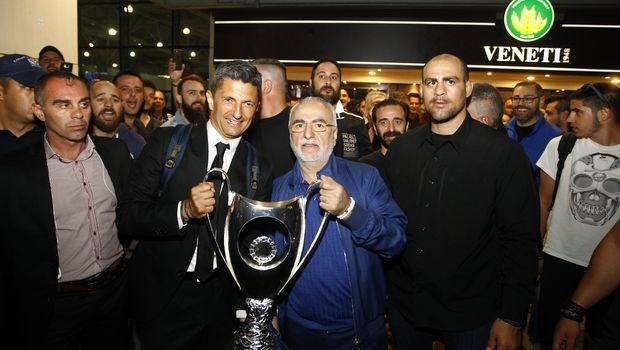 Όταν η αποστολή έφτασε στο “Ελ Βενιζέλος”, οι παίκτες του ΠΑΟΚ αντίκρισαν τον Σαββίδη και τον σήκωσαν στον αέρα, πανηγυρίζοντας για την κατάκτηση του Κυπέλλου.