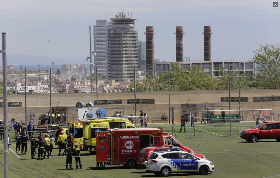 Η εξέδρα κατέρρευσε, με αποτέλεσμα να τραυματιστούν 18 θεατές, μεταξύ αυτών κι ένα παιδί. Οι τραυματίες, οι οποίοι είναι οπαδοί και μέλη λέσχης φίλων των “μπλαουγκράνα” – διακομίσθηκαν στο νοσοκομείο Ciudad Condal.