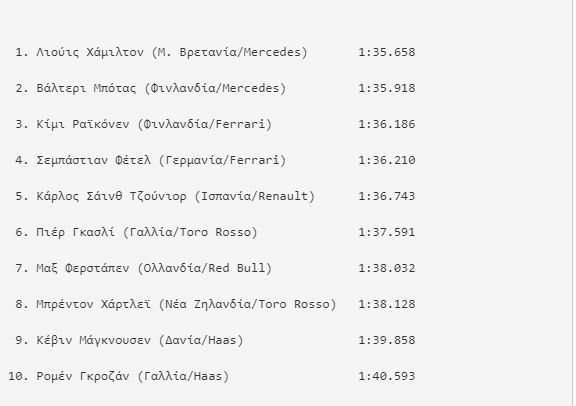 Η πρώτη δεκάδα των επίσημων δοκιμαστικών για το ουγγρικό γκραν πρι: