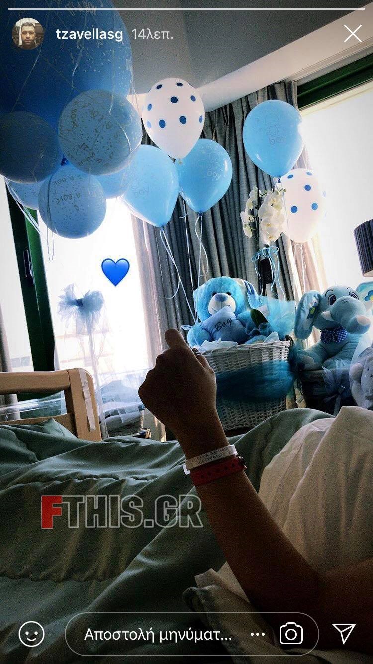 Ο Γιώργος Τζαβέλλας δημοσίευσε στα insta stories του μια τρυφερή φωτογραφία μέσα από το δωμάτιο του μαιευτηρίου. Τα μπλε μπαλόνια, μαρτύρησαν το φύλο του μωρού.