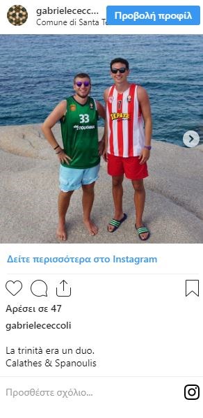 H χάρη των Βασίλη Σπανούλη και Νικ Καλάθη έφτασε μέχρι την Ιταλία, αφού δύο λάτρεις των Ελλήνων γκαρντ φωτογραφήθηκαν με τις φανέλες τους.