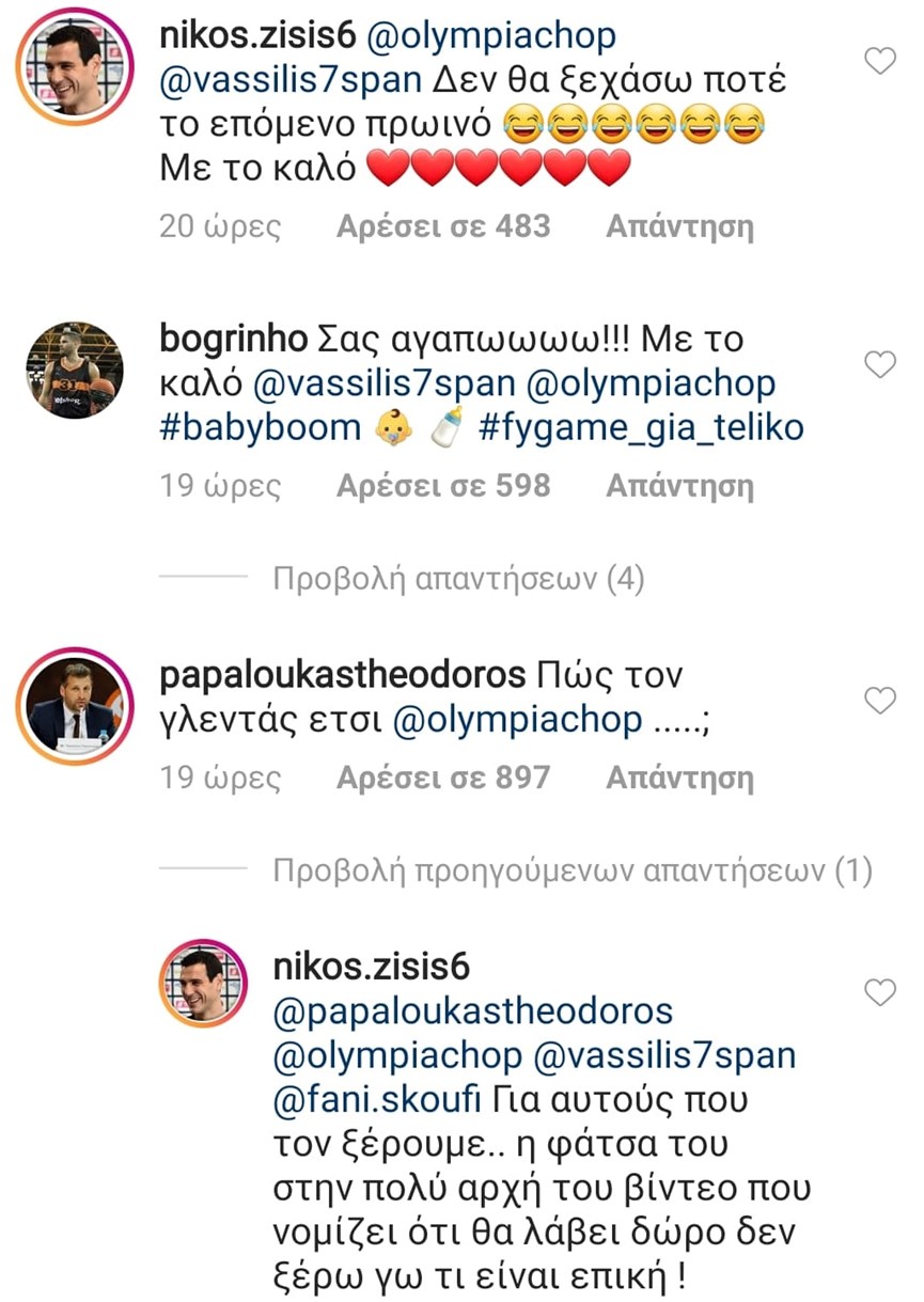 Ξεχωριστό είναι το σχόλιο του Νίκου Ζήση που ήταν μαζί με τον Βασίλη Σπανούλη στις διακοπές τότε και έγραψε: «Δεν θα ξεχάσω ποτέ το επόμενο πρωινό. Με το καλό».