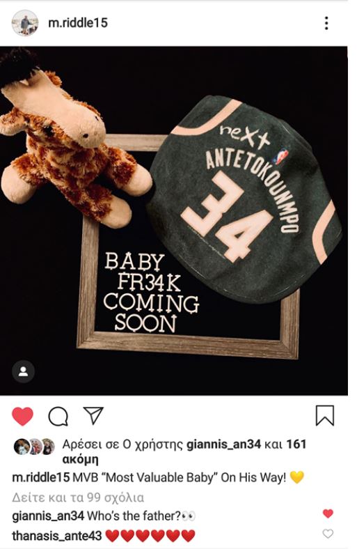 Τις πιο ευτυχισμένες ημέρες στη ζωή του ζει ο Γιάννης Αντετοκούνμπο! Ο ηγέτης των Μπακς θα πάρει το… πιο πολύτιμο βραβείο στα χέρια του σε λίγους μήνες, αφού η σύντροφός του Μαράια είναι έγκυος στο πρώτο τους παιδί! Την είδηση έκανε γνωστή η ίδια μέσω του προφίλ της στο instagram με τον Γιάννη να αστειεύεται και να ρωτάει… «ποιος είναι ο πατέρας!»