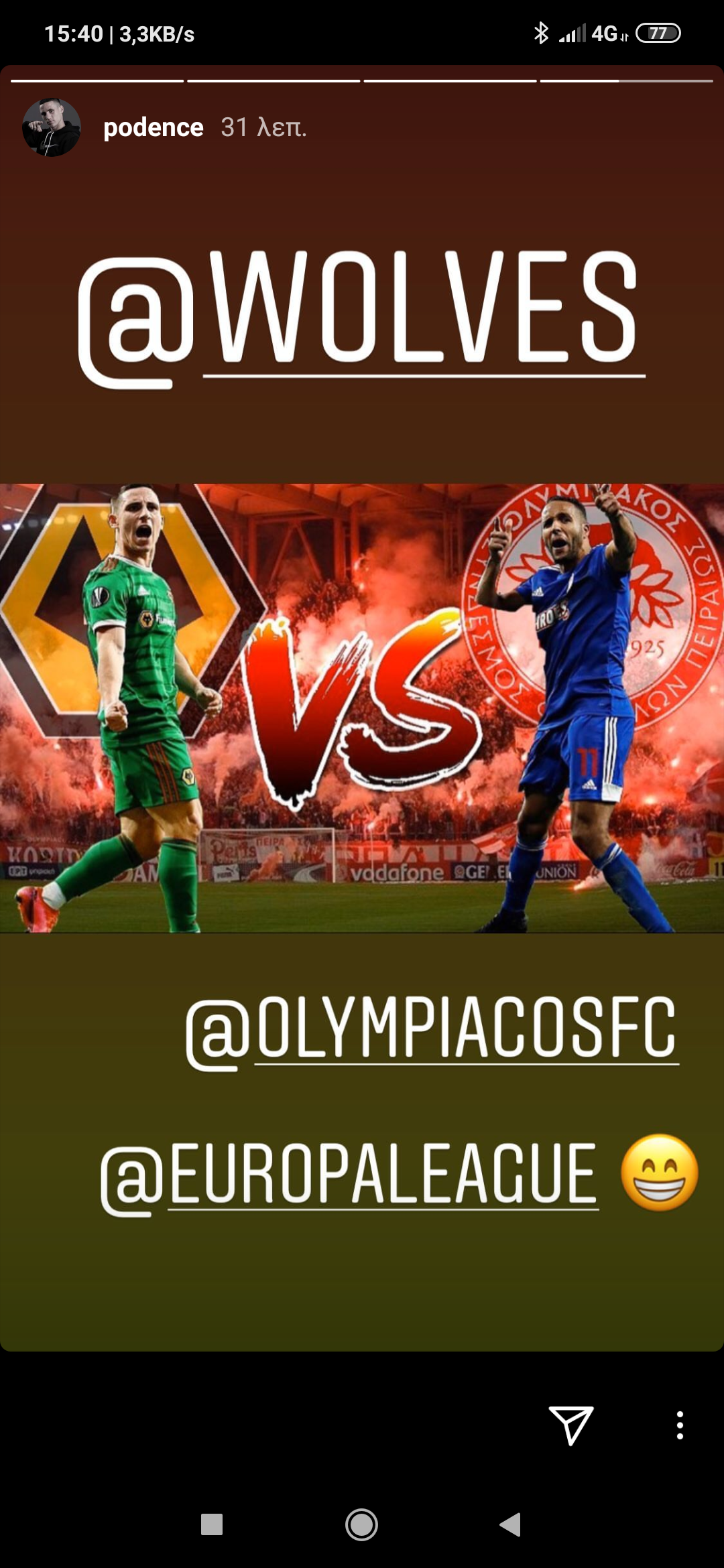 Ο Πορτογάλος εξτρέμ της Γουλβς, μετά την κλήρωση, δημοσίευσε δύο ιστορίες στον λογαριασμό του στο instragram. Σε μία εξ αυτών μάλιστα στέλνει μήνυμα αγάπης στον Ολυμπιακό και τους οπαδούς του, λέγοντας ότι: «Θα σας δω στην Ελλάδα». Έτσι με αυτό τον τρόπο έδειξε την ανυπομονησία του για τις αναμετρήσεις.