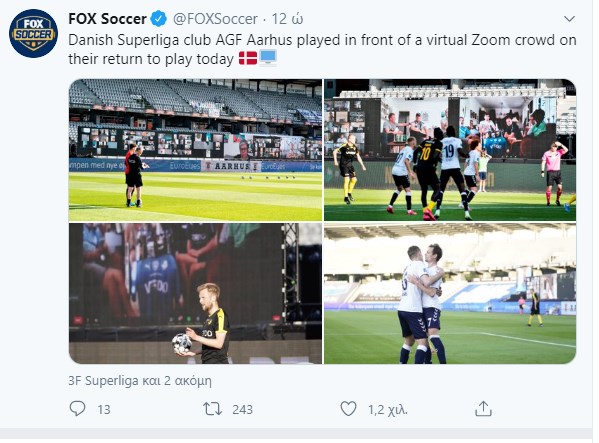 Η ομάδα AGF Aarhus που παίζει στην δανική Superliga βρήκε έναν έξυπνο τρόπο να φέρει τους οπαδούς της στο γήπεδο, διατηρώντας πάντα τους κανόνες κοινωνικής αποστασιοποίησης λόγω της πανδημίας του κορονοϊού. Την Πέμπτη η AGF Aarhus υποδέχθηκε την Randers FC. Εκατοντάδες φίλαθλοι είχαν τη δυνατότητα να βρεθούν ψηφιακά στο γήπεδο και όχι στις κερκίδες μέσω του Zoom και παρακολούθησαν τον αγώνα μέσω της γιγαντοοθόνης που φιλοξένησε περισσότερα από 500 Zoom.