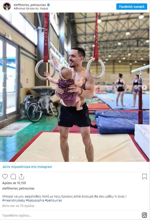 Ο χρυσός Ολυμπιονίκης, Λευτέρης Πετρούνιας είναι ερωτευμένος με την κόρη του και κλασικός “χαζομπαμπάς”. Σε πολλές αναρτήσεις στον προσωπικό του λογαριασμό στο Instagram φροντίζει να δείχνει την αγάπη του για τον “καρπό του ερώτα” του με τη Βασιλική Μιλλούση. Έτσι σε πρόσφατη ανάρτησή του ο κορυφαίος Έλληνας αθλητής έχει ανεβάσει μια τρυφερή φωτογραφία με την κορούλα του, γράφοντας στη λεζάντα: «Μπορεί να μην ασχοληθείς ποτέ με τους Κρίκους αλλά σίγουρα θα σου μάθω τι είναι».