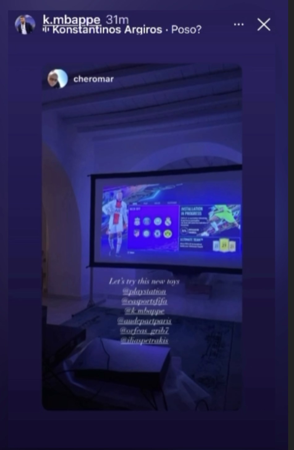 Ο Γάλλος σούπερ σταρ της Παρί Σεν Ζερμέν αναδημοσίευσε ένα στόρι από φίλο του, ο οποίος δοκίμαζε το νέο Playstation στο Instagram. Βέβαια ο Μπαπέ επέλεξε να προσθέσει και τη δική του μουσική πινελιά με υπογραφή… Κωνσταντίνου Αργυρού. Το τραγούδι που ακούγεται στο βίντεο είναι το «Πόσο» του δημοφιλούς Έλληνα τραγουδιστή.