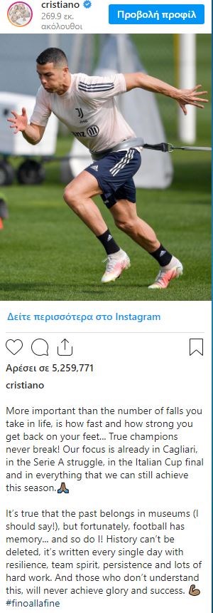Ο Κριστιάνο Ρονάλντο απάντησε μέσω Instagram σε όσους τον επέκριναν έπειτα από τον αποκλεισμό της Γιουβέντους από την Πόρτο στο Τσάμπιονς Λιγκ.
