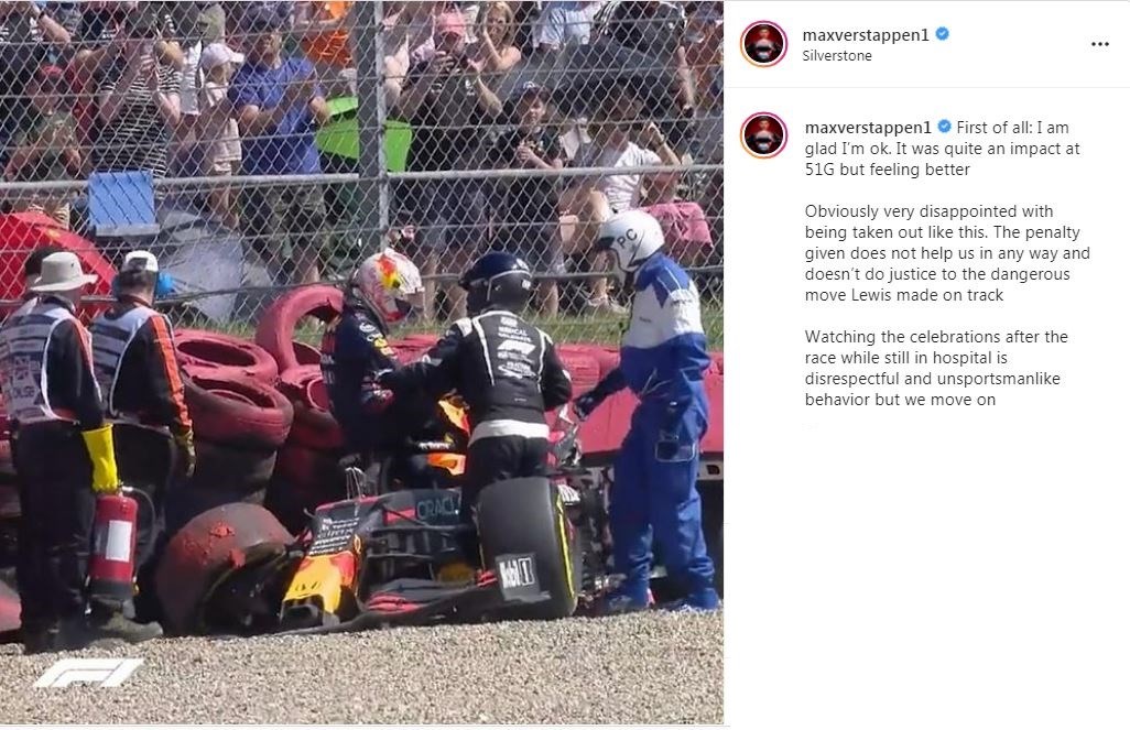 Ιδιαίτερα απογοητευμένος εμφανίστηκε ο Μαξ Φερστάπεν μετά την απόσυρσή του από το Grand Prix της Βρετανίας λόγω της σύγκρουσης που είχε με τον Λιούις Χάμιλτον. Μάλιστα, μετά από την σύγκρουση, ο Ολλανδός πιλότος πήγε στο νοσοκομείο και δεν έκρυψε την ενόχλησή του για τους έξαλλους πανηγυρισμούς του Βρετανού μετά τη νίκη του, ενώ έριξε τα βέλη του και για την ποινή που του επιβλήθηκε.